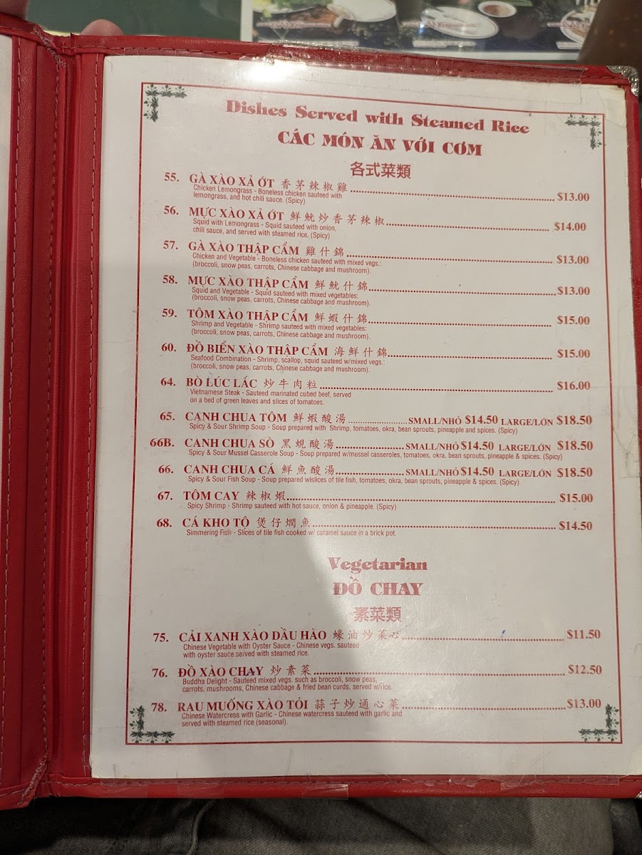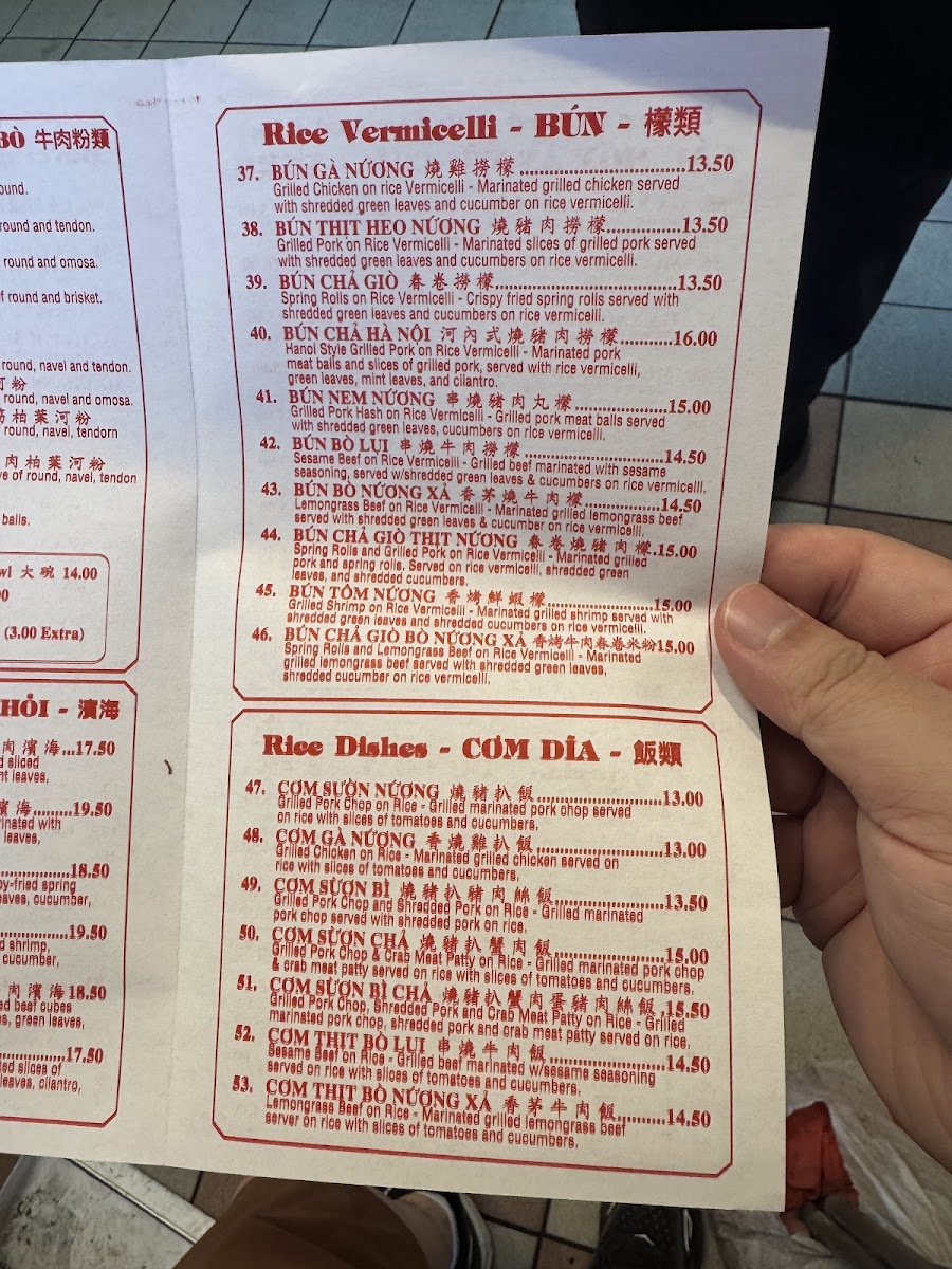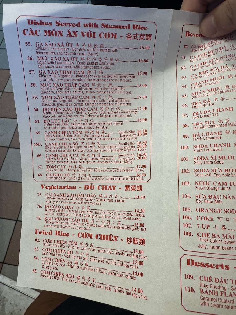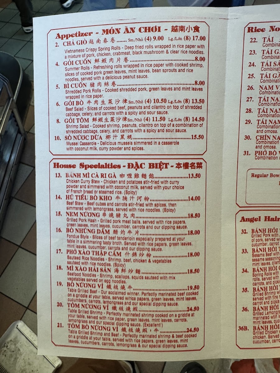The menu at Phở Bằng offers a variety of traditional Vietnamese dishes, focusing primarily on pho and rice-based meals. The selection includes various types of rice noodle beef soups featuring cuts like brisket, tendon, eye of round, and meatballs, allowing diners to customize their pho experience. In addition to pho, the menu contains multiple rice dishes such as grilled pork chop, shredded pork, grilled chicken with lemongrass, and curry chicken served over rice. There are also rice dishes cooked in clay pots that combine choices of chicken, pork, beef, or seafood with mixed vegetables.
